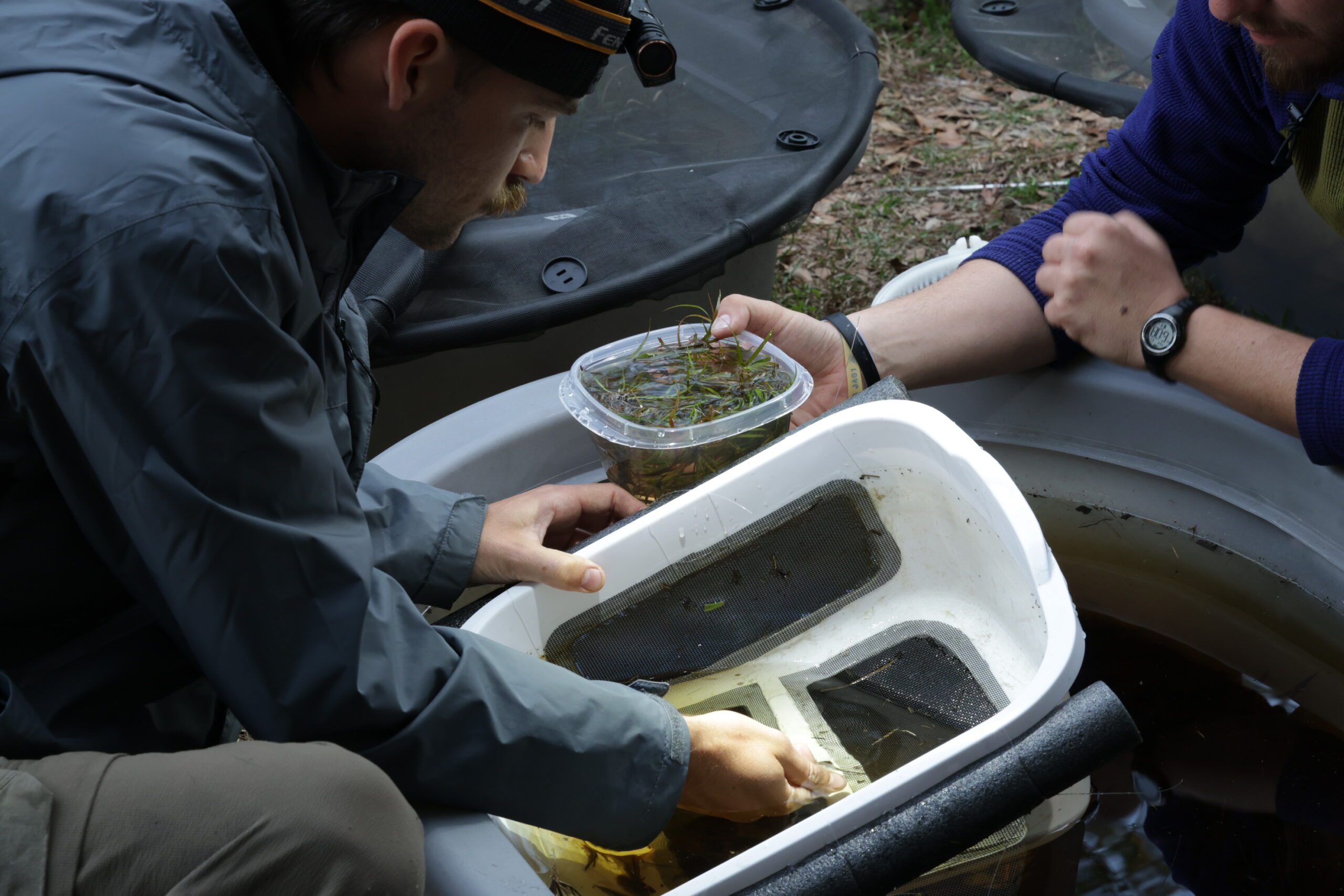 Take the Carolina gopher frog. With only a handful of breeding populations left in the forest, these elusive frogs were nearly lost in South Carolina. To change that, alongside our partners, we launched a headstarting program in 2019. Each year, we collect egg masses from the wild, raise tadpoles in captivity until they become larger and more resilient froglets, and then return them to restored ponds. We released more than 1,300 back into the wild in 2024.