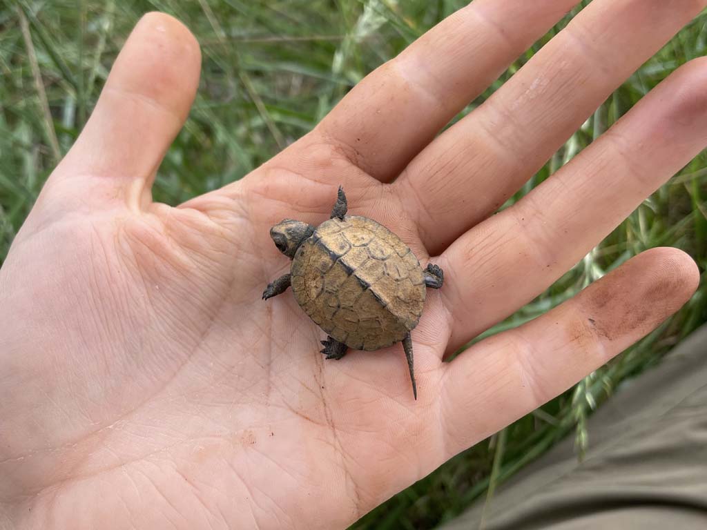 “It was like pulling rabbits out of a magician’s hat; we just kept going back for more,” laughed Emilly as she described a recent bog turtle survey. One after the other, three turtles of different age classes emerged in the hands of our Field Biologists after reaching their arms down a burrow in the mucky soil of a bog, using a method aptly named “noodling.”