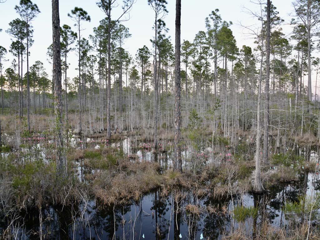 The Panhandle’s remaining dynamic landscapes support increasingly rare native diversity. Longleaf pine ecosystems are interspersed with sandhills, rivers, shrublands, and salt marshes, inhabited by ornate diamondback terrapins, green anoles, bobcats, river otters, and more.