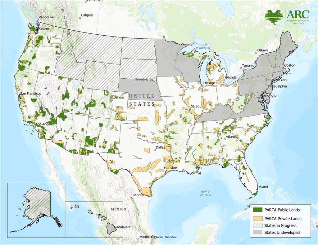 At ARC, we’ve long recognized the importance of this dual need and have designed our PARCA (Priority Amphibian and Reptile Conservation Area) strategy to meet it. We use science-based modeling and local expertise to identify conservation hotspots across the country, and from there, we work to implement strategic conservation measures on the ground with a wide range of partners across sectors, both public and private.