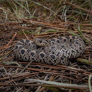 These snakes are closely associated with pocket gophers and use the gophers’ tunnels as shelter, while also preying on the gophers themselves.
